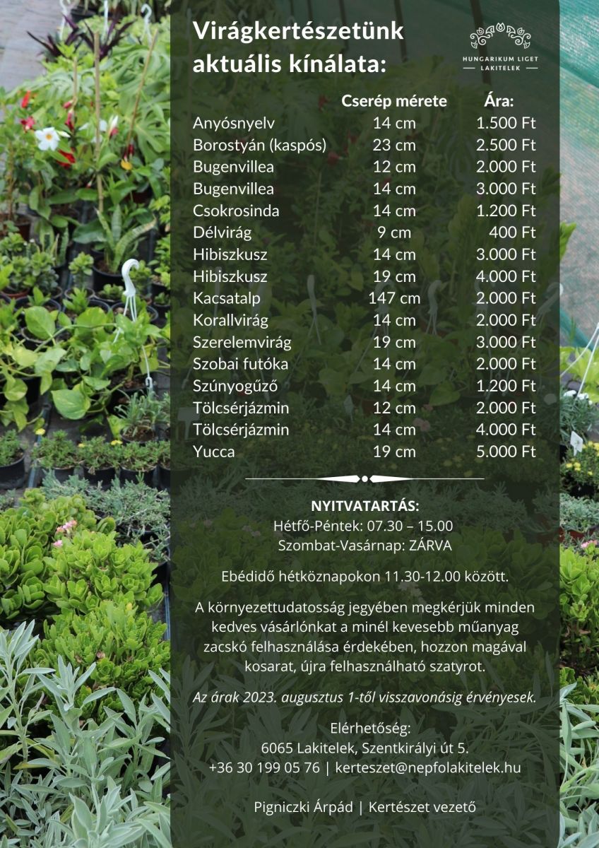 Kertészetünk aktuális kínálata 2023. augusztus