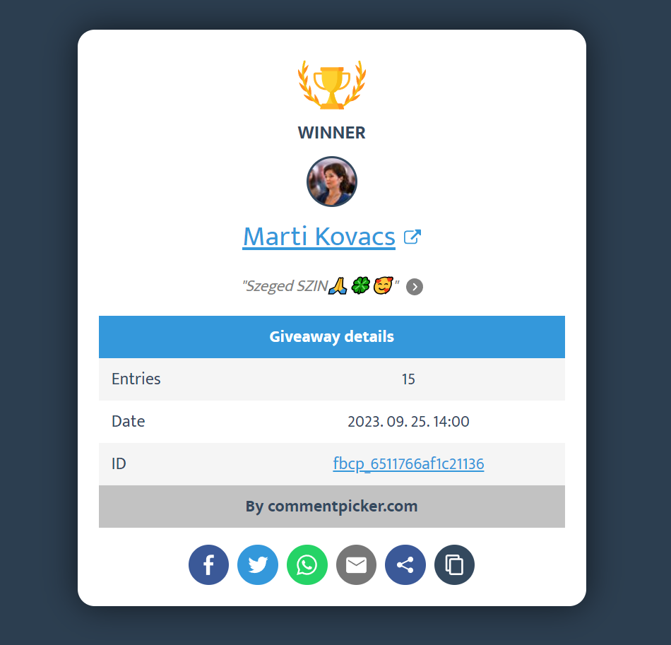 A nyertes nevét a sorsolás után Facebook posztban tesszük közzé, a nyertessel privát üzenetben vesszük fel a kapcsolatot.